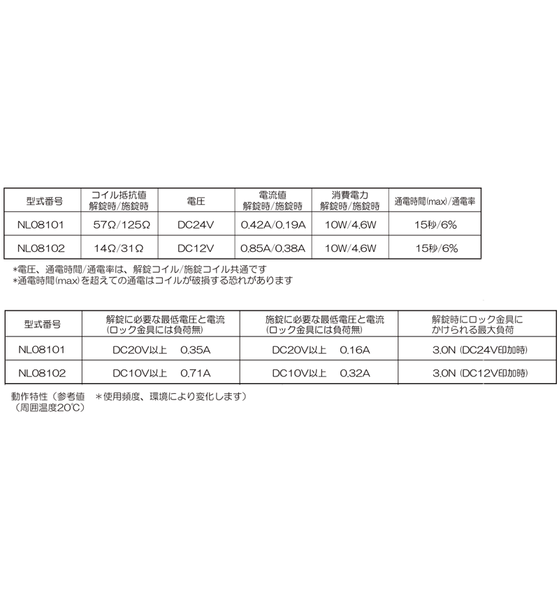 | 磁石内蔵で通電せず解錠状態を保持でき、省電力で使用可能。 |